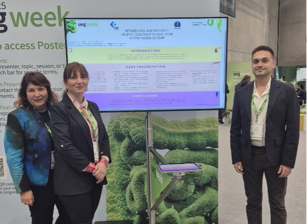 Naučni rad pod nazivom “BETWEEN RISK AND NECESSITY: URGENT COLECTOMY IN ASUC AFTER RECENT NSTEMI ON DAPT” predstavio je autor dr Vidak Čogurić u vidu poster prezentacije, a koautori na radu su dr Sanja Ćalasan i Prof dr Brigita Smolović.